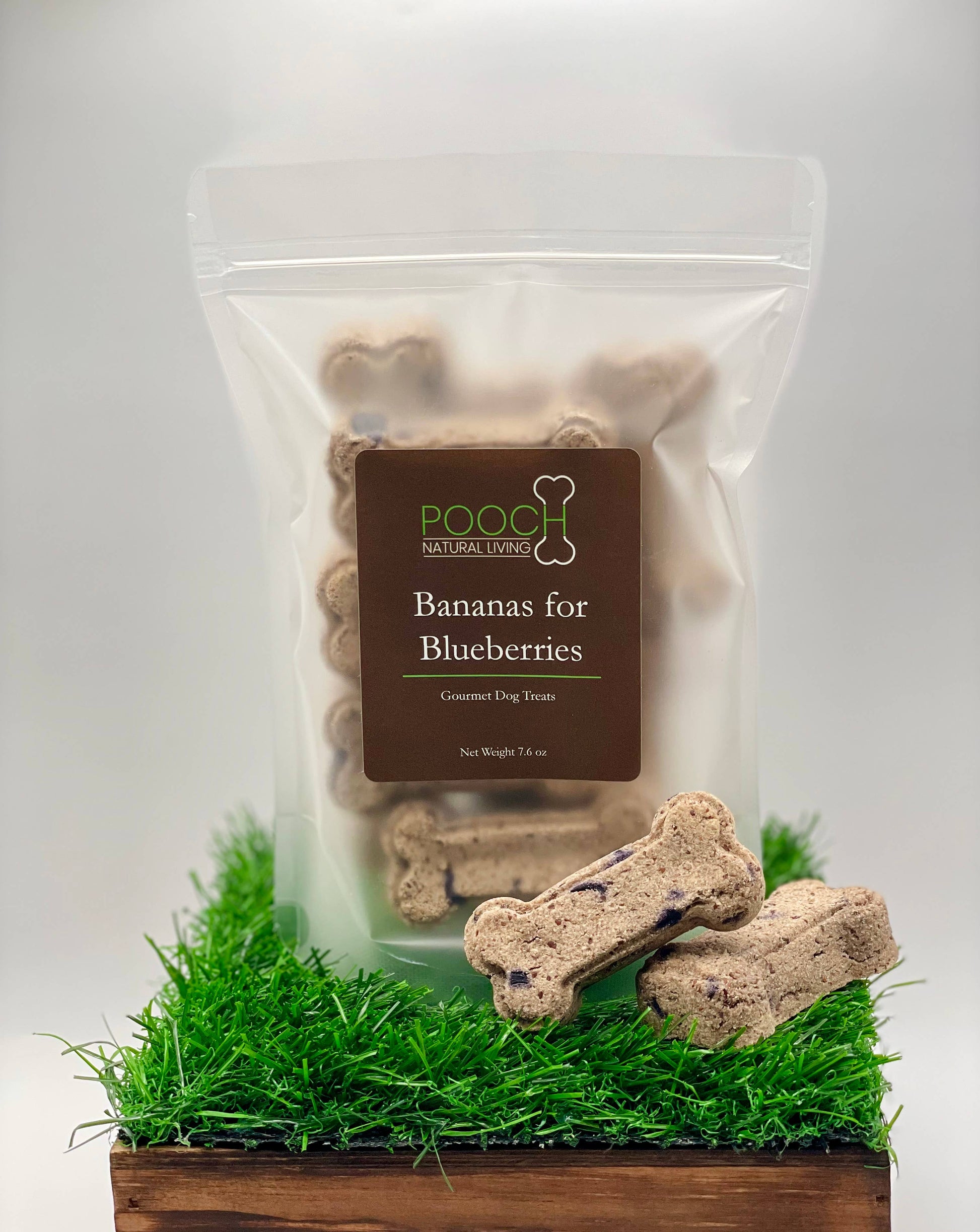 Bananas for Blueberries are 2.5" sized crunchy treats (10 count) shaped as a dog bone. These tasty treats will have your pooch going bananas for more!