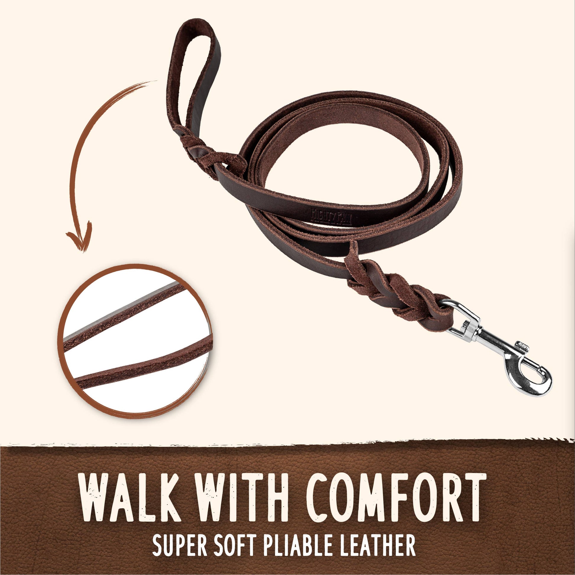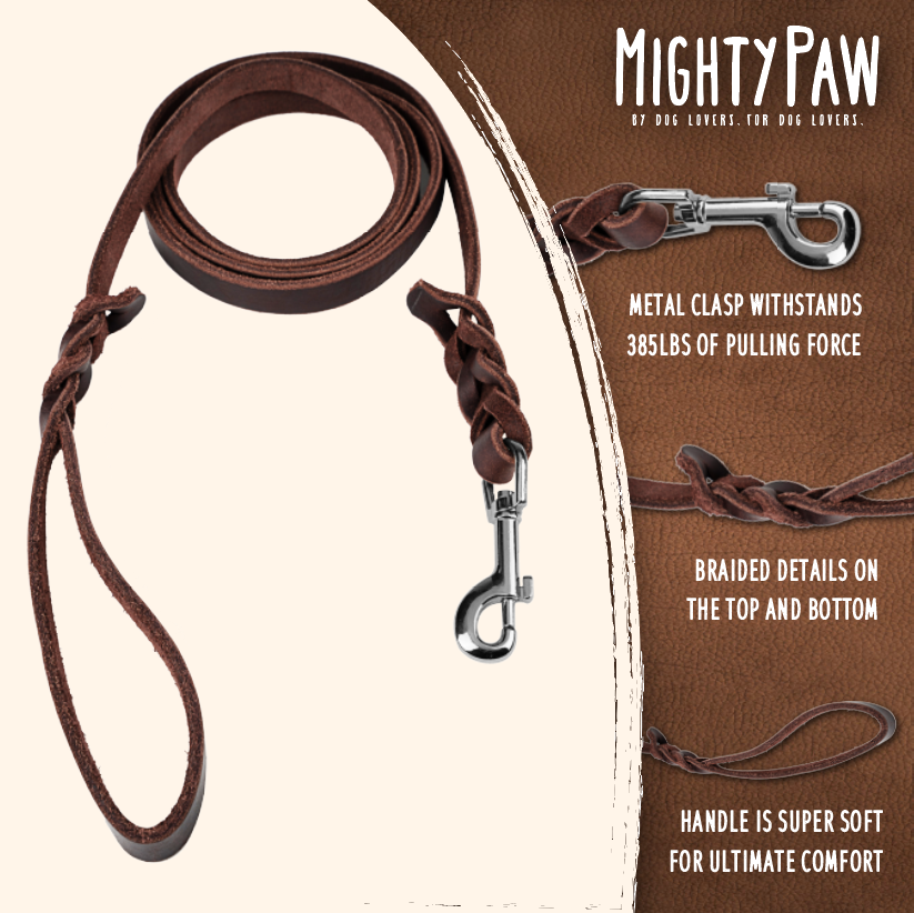 Mighty Paw Braided Leather Dog Leash