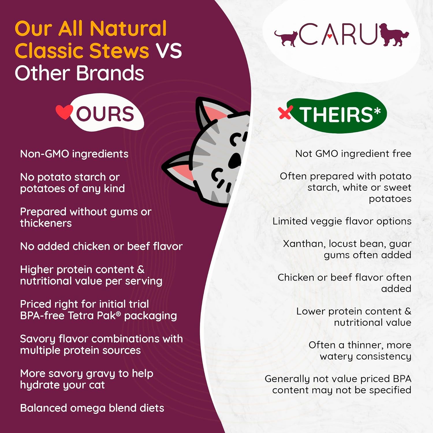 Caru Cat Wet Food Classics Wild Salmon&Turkey Stew Healthy Functional Topper Balanced Omega Blends(5.5 oz Cartons)