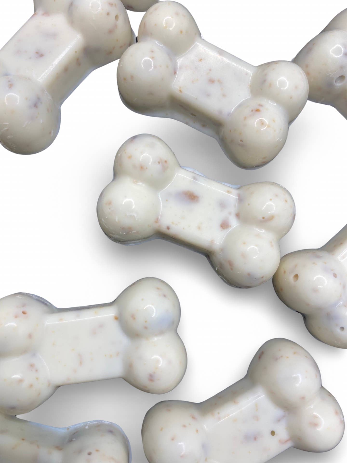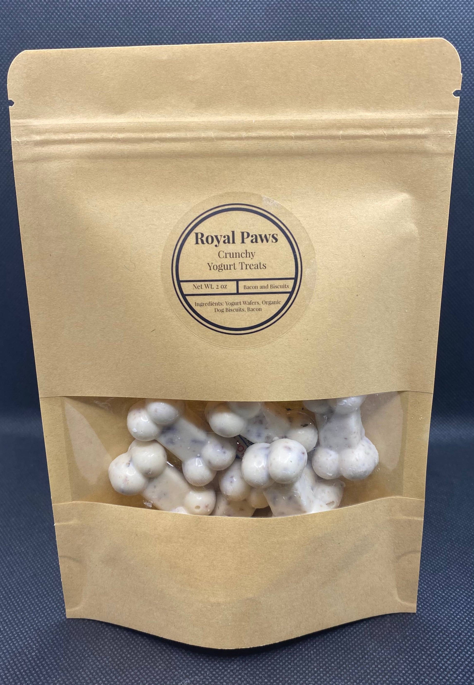 Delicious Crunchy Yogurt Treats. Each bite is filled with tasty bacon pieces and our Organic dog biscuit crumbles.