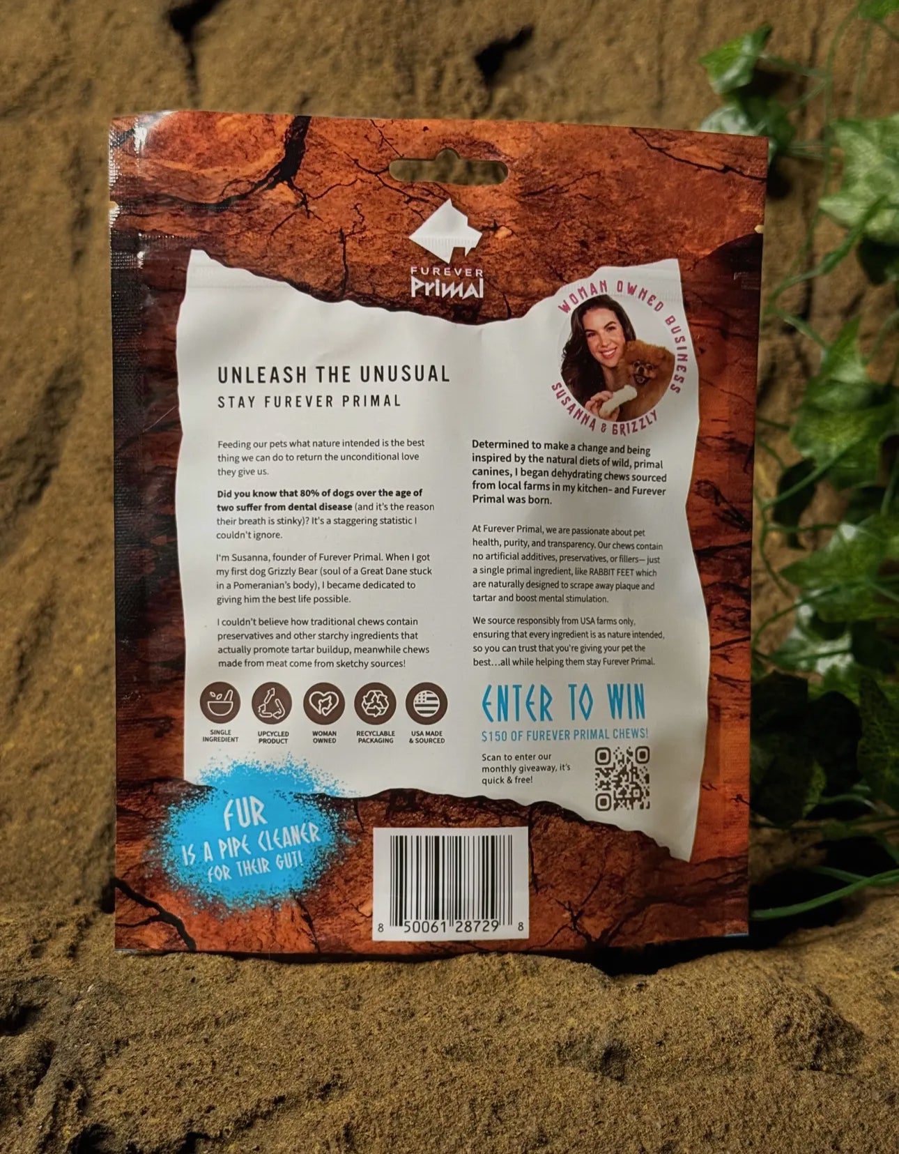 Fur works like a "pipe cleaner" for the gut! It promotes a healthy gut biome, improves nutrient absorption, and supports immunity by clearing out buildup. It aids in digestive balance, helping to pass food or bulk up runny stool. Fur also helps polish teeth, providing a natural flossing effect,