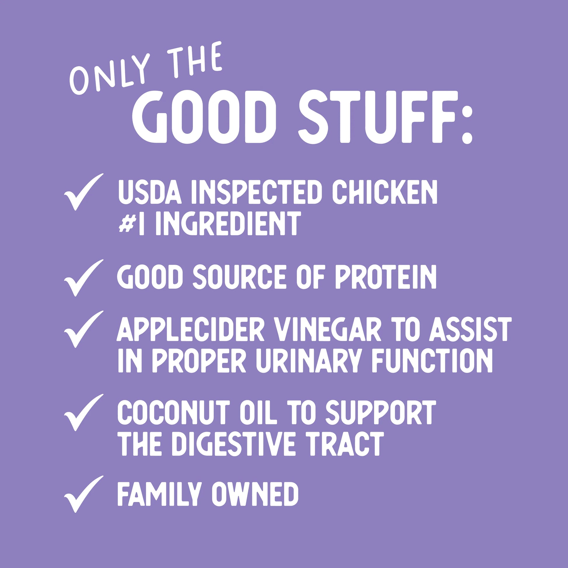 Ingredients-Chicken, Chicken Broth, Modified Tapioca Starch, Tricalcium Phosphate, Potassium Chloride, Salt, Guar Gum, Choline Chloride, Coconut Oil, Apple Cider Vinegar, Dextrose Anhydrous, Taurine, Zinc Proteinate, Iron Proteinate, Vitamin E Supplement, Sodium Selenite, Thiamine Mononitrate, Manganese Proteinate, Niacin, Vitamin A Supplement, Copper Proteinate, Calcium Iodate, Calcium Pantothenate, Riboflavin Supplement, Vitamin D Supplement, Pyridoxine Hydrocholoride, Vitamin B12 Supplement, Folic Acid, Biotin, Menadione Bisulfite Complex (Source of Vitamin K Activity)