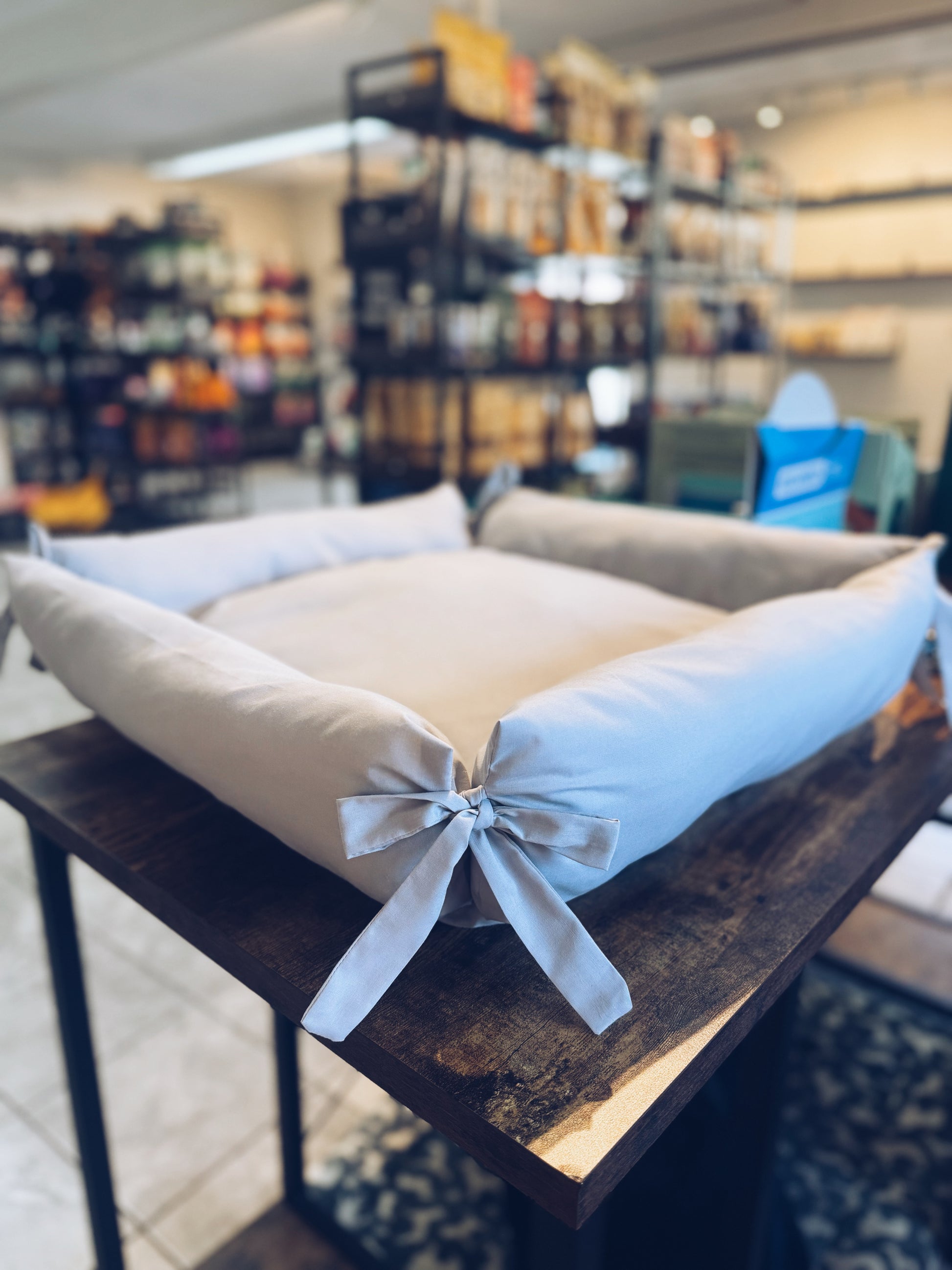 Each Dog Bed is made with quality and care. These dog Beds have a removable pillow inside which allows the bed to be washable. I recommend washing them on a delicate setting. These dog beds look beautiful in the home and have the most adorable bow detail on each side. These beds are also very soft and comfortable for pups.