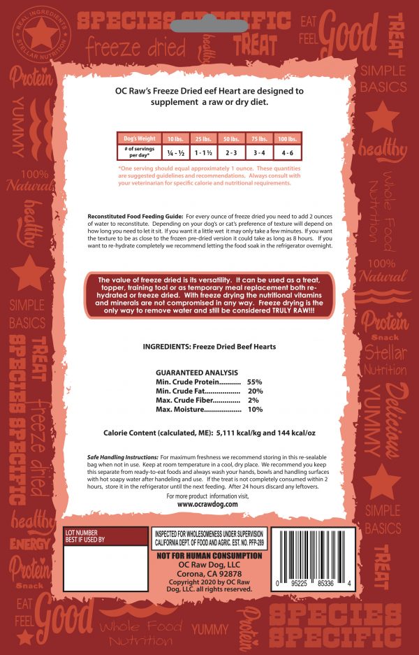 OC Raw Beef Heart Freeze Dried Dog, Cat (4 OZ Bag)