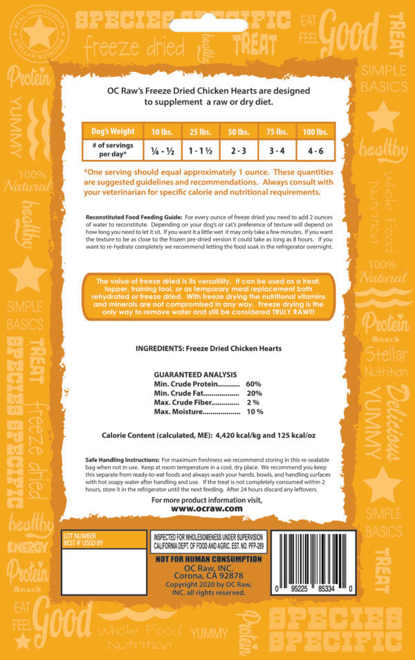 OC Raw Freeze Chicken Hearts Cats,Dog (4 OZ Bag)