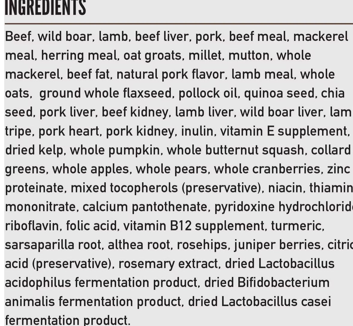 - Our authentic WholePrey diet features the most succulent parts of the prey like meat, fish, organs and bone to mimic what your dog’s ancestors consumed in the wild.