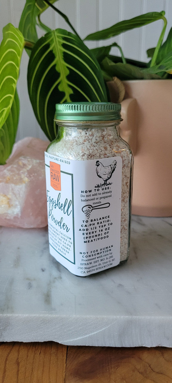Eggshells are a highly bio-available form of elemental calcium. They lack many other important and beneficial nutrients which are provided in raw bone, but they are an excellent choice for providing necessary calcium when preparing meals for animals in renal failure, or for animals that cannot eat raw bone for other health or medical reasons.